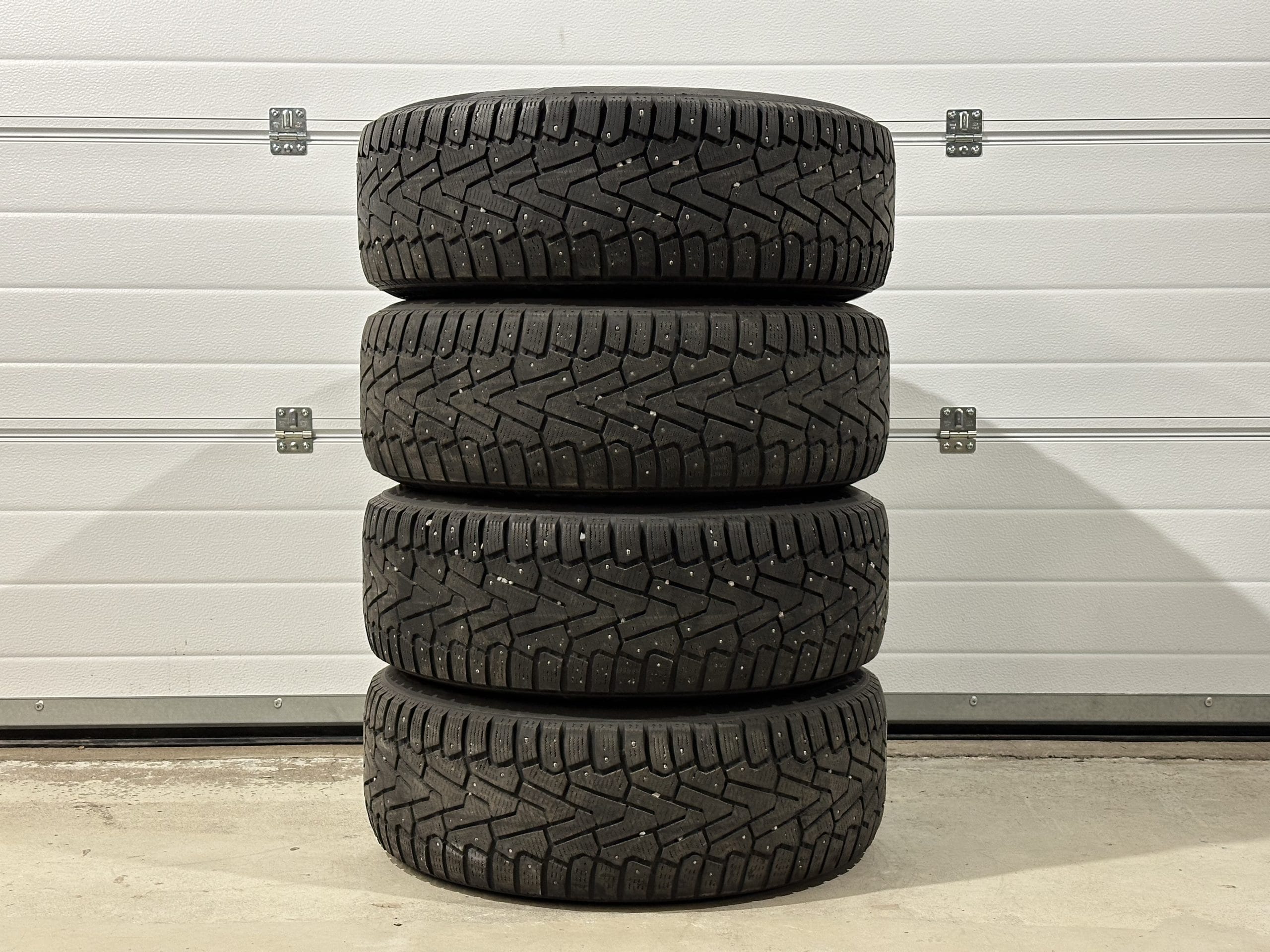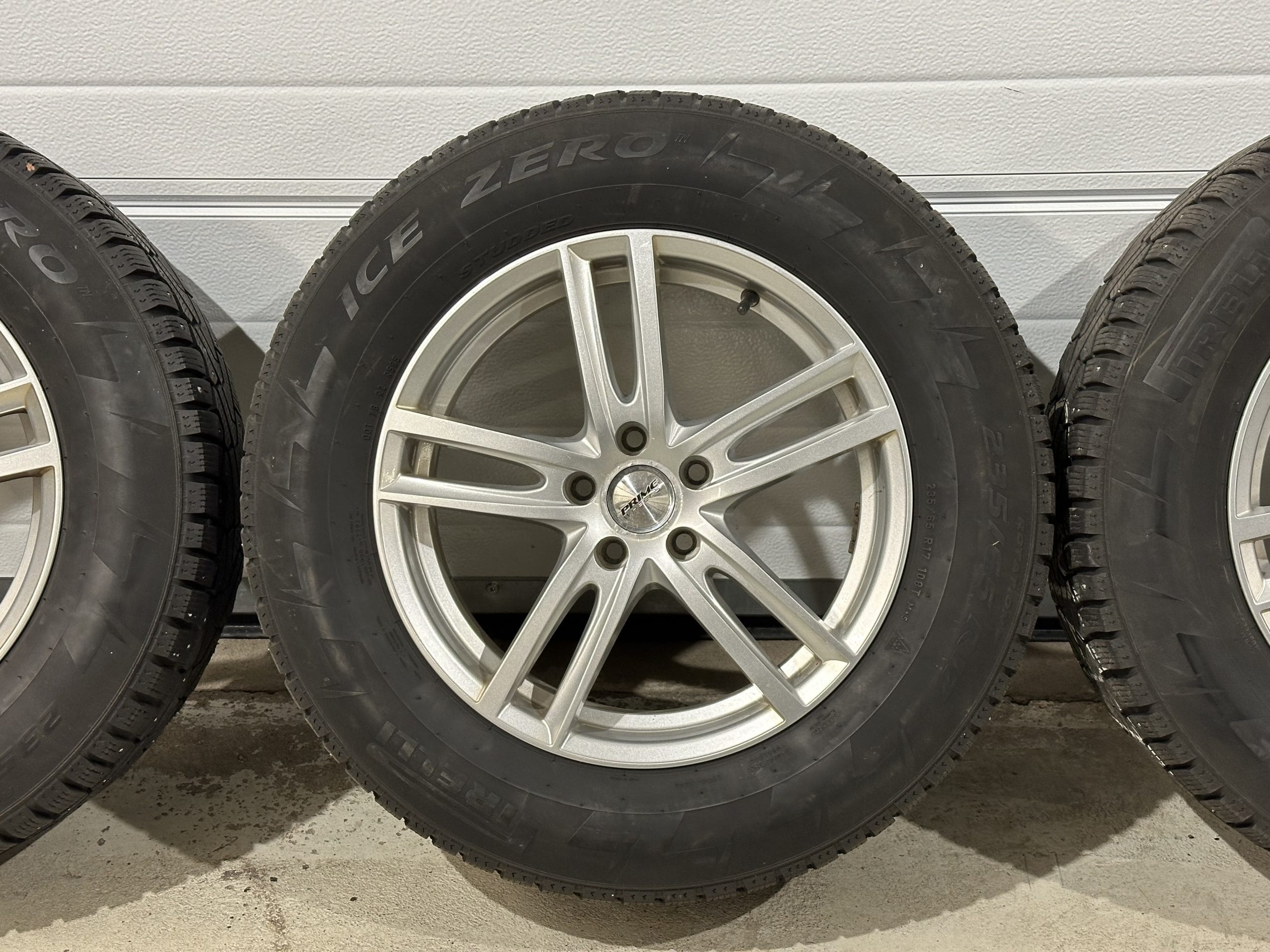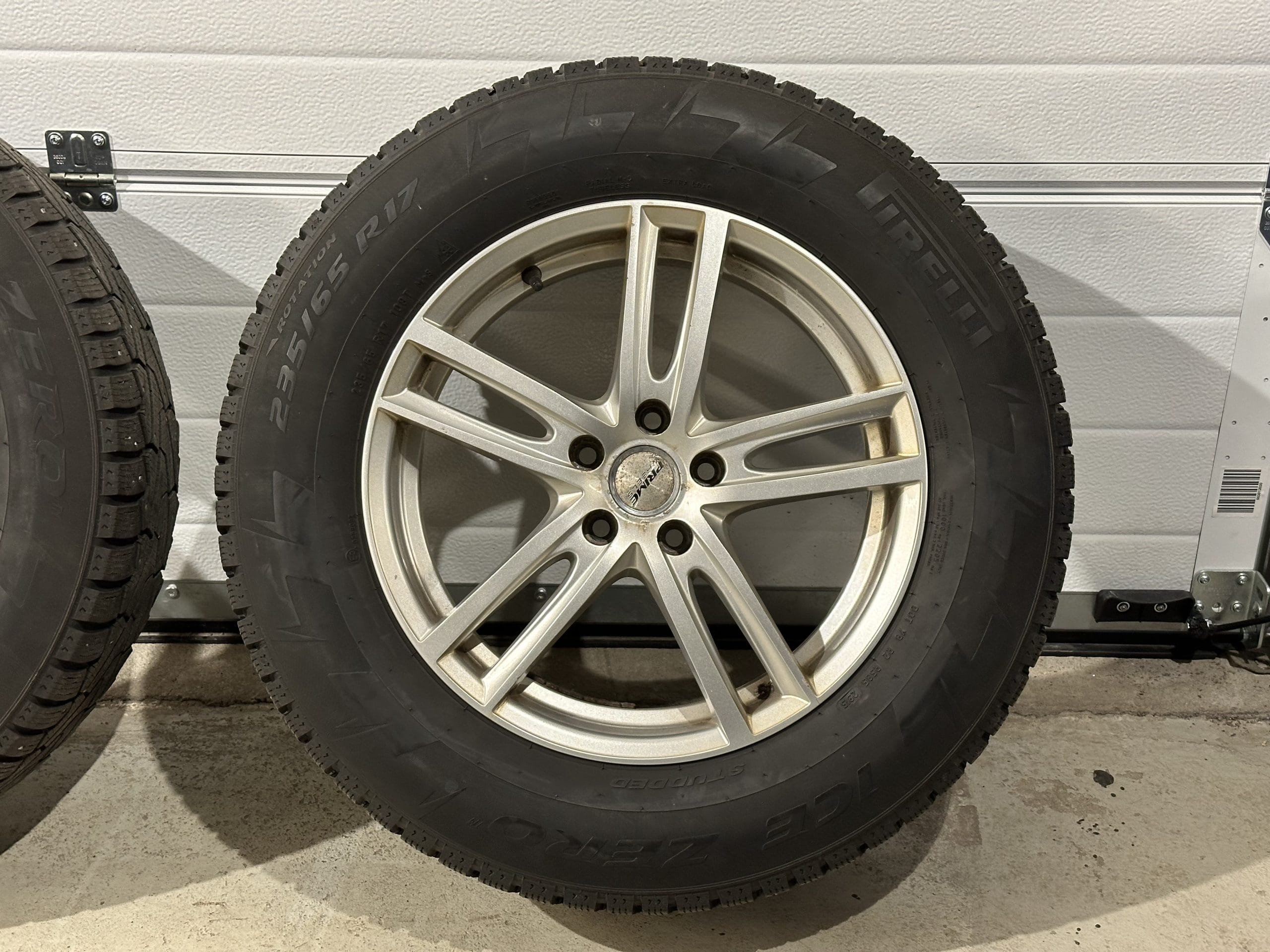 Alumiinivanteet Volvo / Ford merkkeihin. Renkaina Pirelli 235/65-17 (108) nastarenkaat, joissa pintaa n. 6,5; 5,0; 5,0 ja 5,4mm. Sarja sopii suoraan myös XC40 XC70 S60 V40 V50 V60 V70